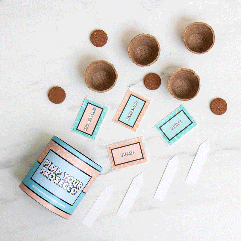 Cada kit contiene semillas diferentes : el kit «Pimp Your Gin» le permitirá cultivar pepinos, romero, tomillo y lavanda, mientras que él «Pimp Your Prosecco» contiene semillas de fresas, violetas, tomillo y estragón. ¡Y como cada kit contiene 4 plantas para aromatizar sus cócteles, usted tendrá la oportunidad de probar varias combinaciones !