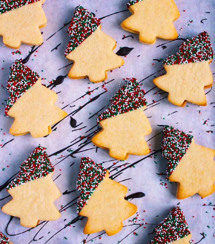 En este punto puedes dejar las galletas como están, o puedes mojarlas en chocolate y espolvorearlas.